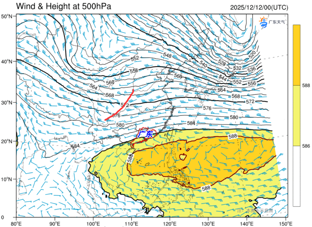 这股寒潮预计将于12日夜间入粤,抵达时为中等偏强冷空气。