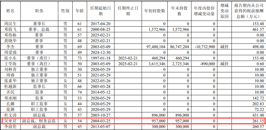 根据该公司2024年年报披露,吴亚君2024年度从公司获得的税前报酬总额为261.15万元。