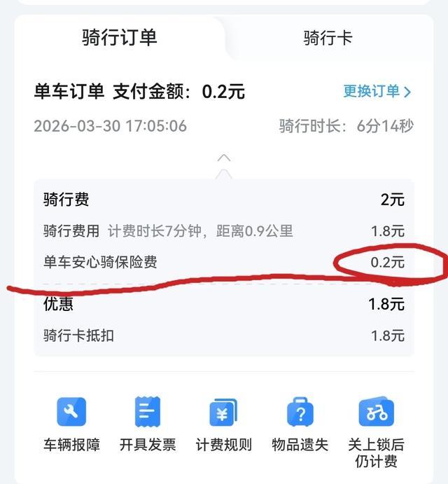 有月卡用户表示,自己每次骑行也包含了这笔保险费
